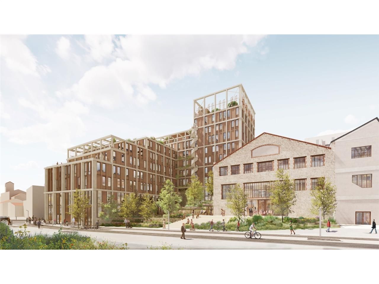 - Opération neuve ambitieuse composée de 2 immeubles de bureaux neufs et de 3 halles industrielles réhabilitées.