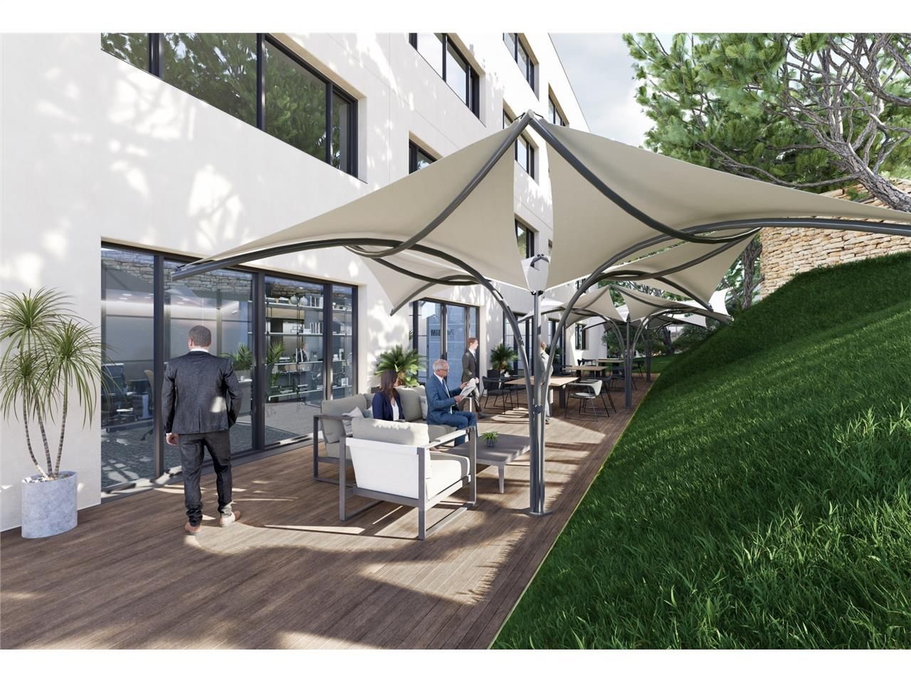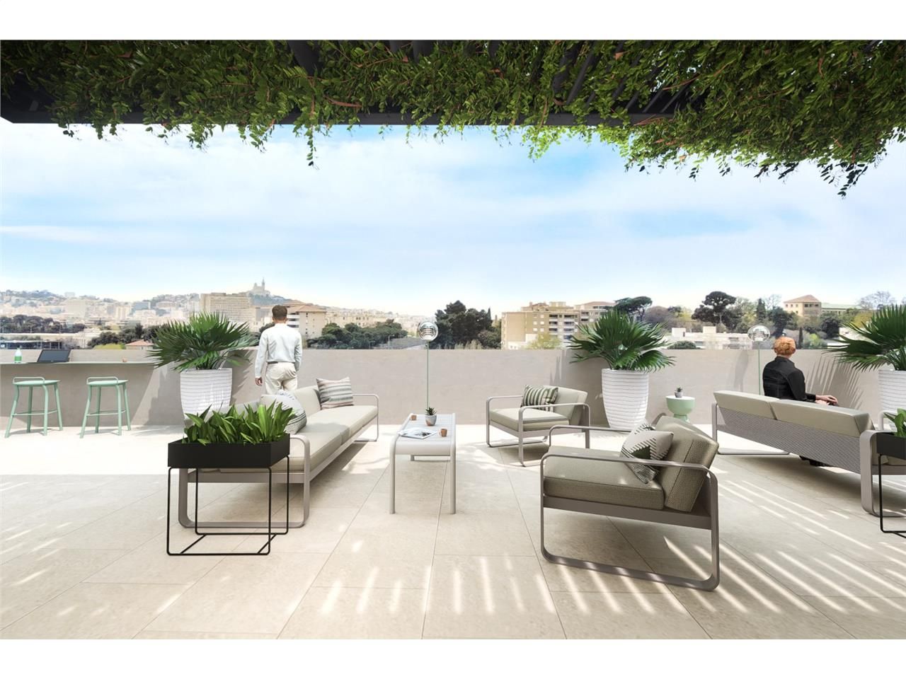 BUREAUX NEUFS A CONSTRUIRE - A LOUER - MARSEILLE 13012 : L'emplacement et le caractère exceptionnel de cet immeuble offrent à la majorité des lots de bureaux un accès extérieur à des terrasses privatives pouvant aller jusqu'à 170 m². Ces terrasses sont de véritables espaces de vie qui bénéficient d'une vue privilégiée sur Marseille.
