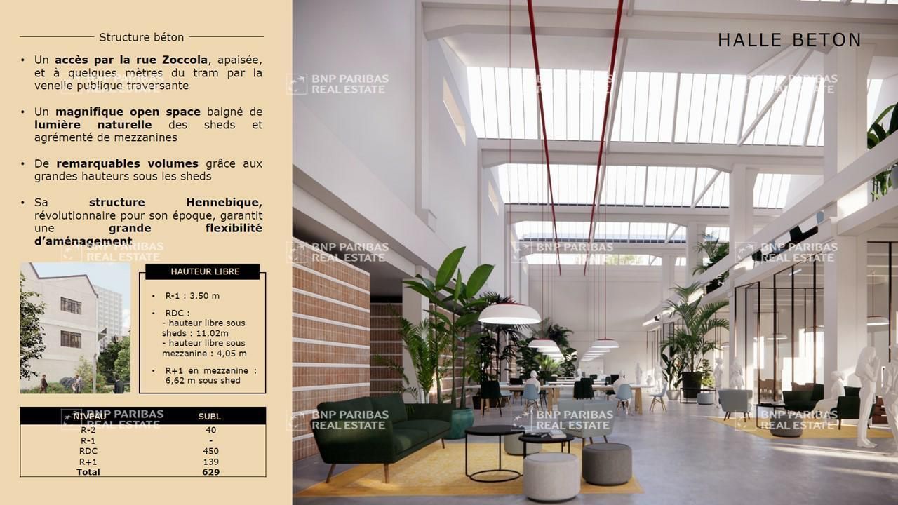 BNP Paribas Real Estate vous propose à la location ou à la vente des bureaux au sein d'une opération mixte intégrant construction neuve et rénovation de trois hangars industriels de l'ancienne usine Ford. Le projet inclut également des logements et commerces, offrant un environnement dynamique et polyvalent au coeur d'Euromed 2.