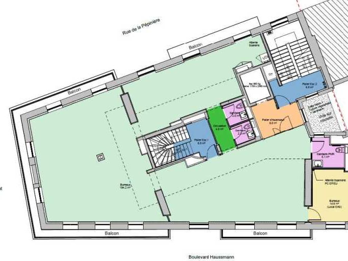 - Double accès au bâtiment par le Bd Haussmann et par la rue de la Pépinière