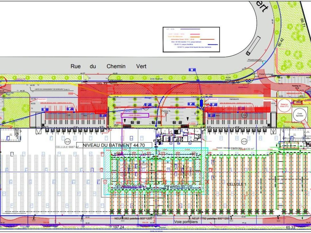 | Sprinklers | en toiture et par nappe pour les cellules produits dangereux |