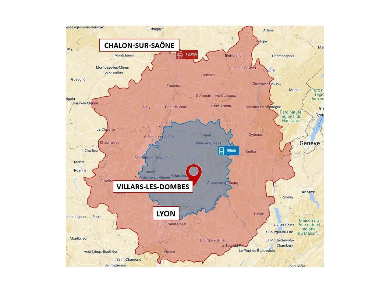 - Gare Villars-Les-Dombes (TER) : 1,3 km (3 minutes)