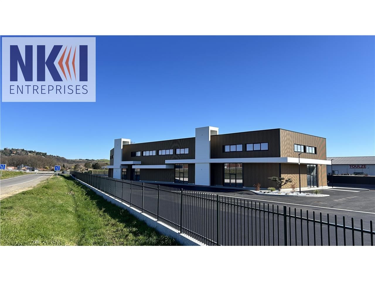 NKI ENTREPRISES vous propose à la location un programme neuf avec un très beau visuel commercial, situé dans la zone de la Bruyère à Pinsaguel, au sud-ouest de Toulouse, avec un accès rapide à la D820 et à l'A64 - sortie 36.