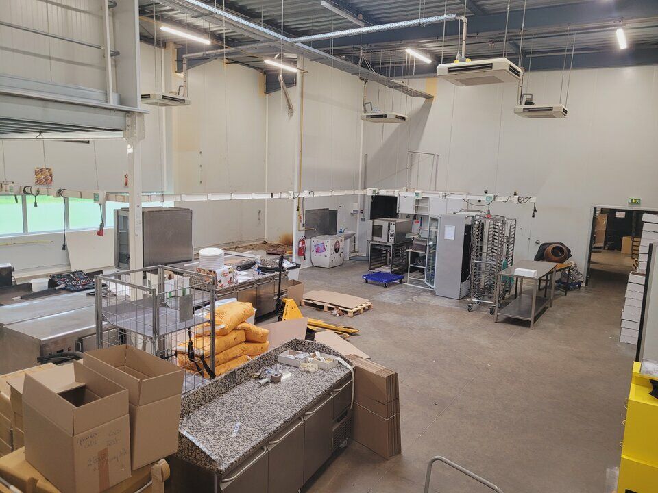 - à l'étage (250 m²) : bureaux, stockage, archives, vestiaires, réfectoire et sanitaires avec 2 douches.