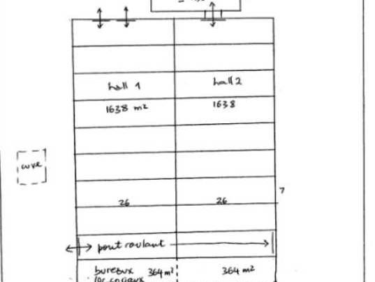- 2 ponts roulants sur une travée de 187 m² entre les deux portes sectionales