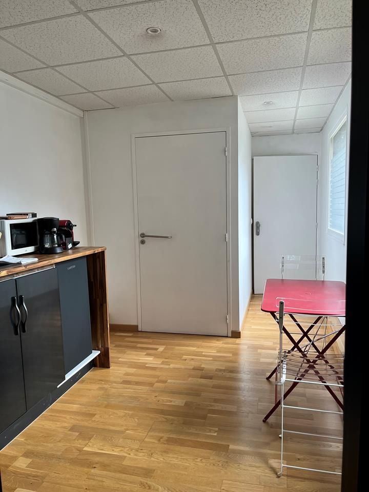 Ensemble en RDC d'immeuble, composé d'un hall d'entrée avec borne d'accueil/salle d'attente, 2 bureaux, 1 salle de réunion, 1 espace cuisine/repos, bloc sanitaires (accessible PMR).