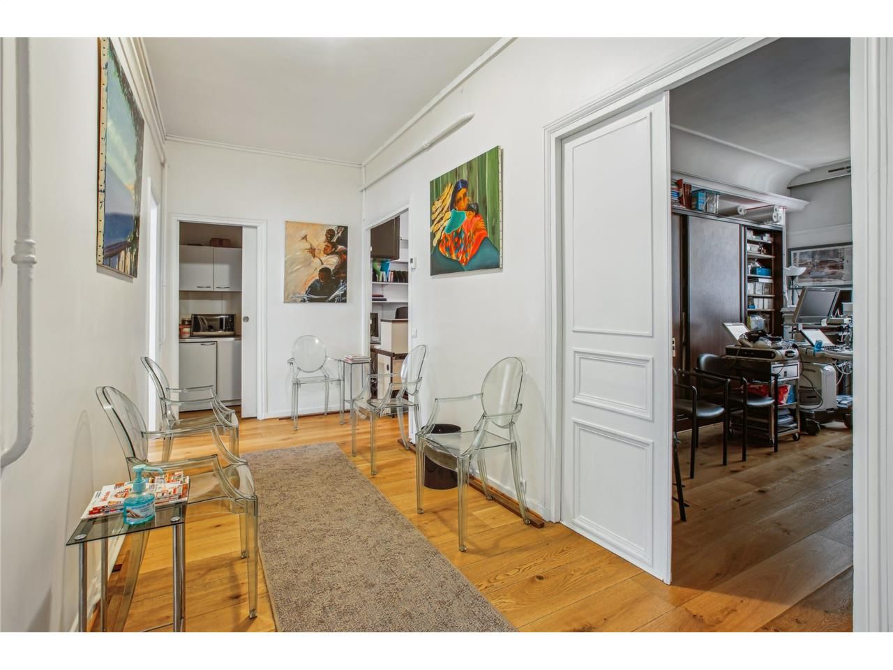BAIL PROFESSIONEL : L'agence LAMY BUREAUX COMMERCES vous propose à la location un local professionnel d'une surface de 83m² en RDC de l'immeuble. Ce local est composé de quatre bureaux, un dégagement, une cuisine et un sanitaire privatif. Le local, en double vitrages, est en bon état général et bénéficie du charme de l'ancien ( parquet, moulures, cheminée)