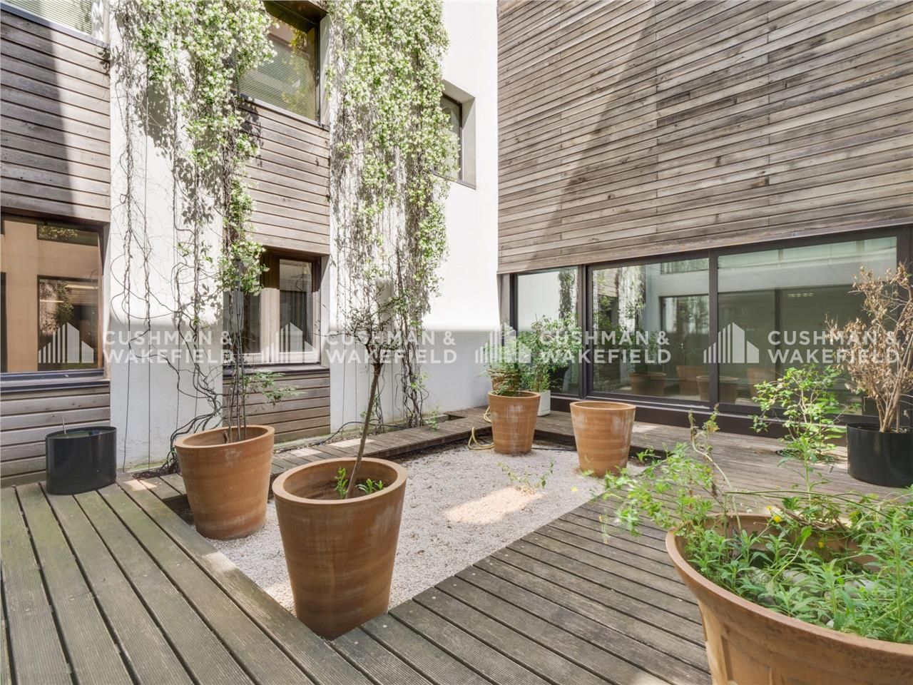 Spacieux et lumineux, ces bureaux sont baignés de lumière et donnent pour certains lots sur un superbe patio en bois végétalisé.