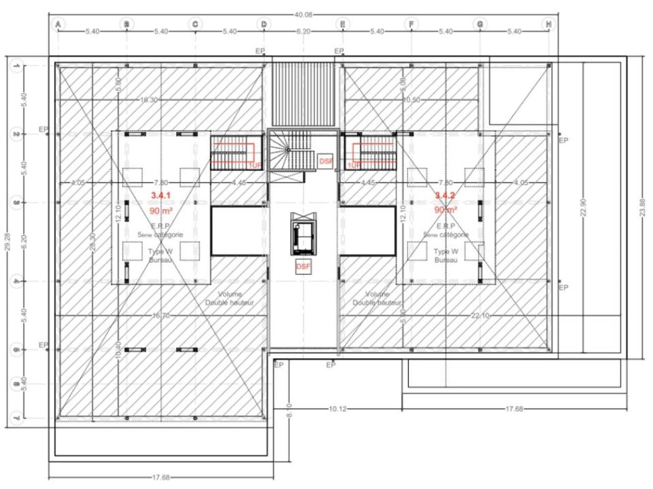 - R+3 : chaque lot comprend une mezzanine de 90m² donnant sur une double hauteur lumineuse