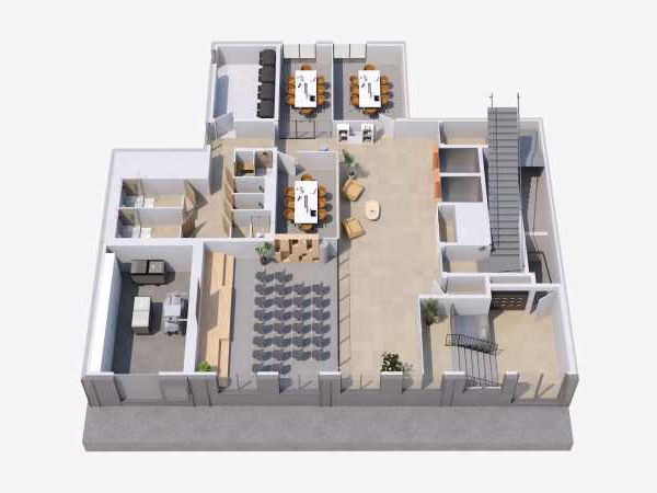 - Étage courant : livré en open space, 1 point d'eau pour tisanerie, 1 douche en mesure conservatoire