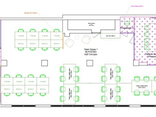 - Surfaces organisées en espaces ouverts, salles de réunion équipées et 2 kitchenettes