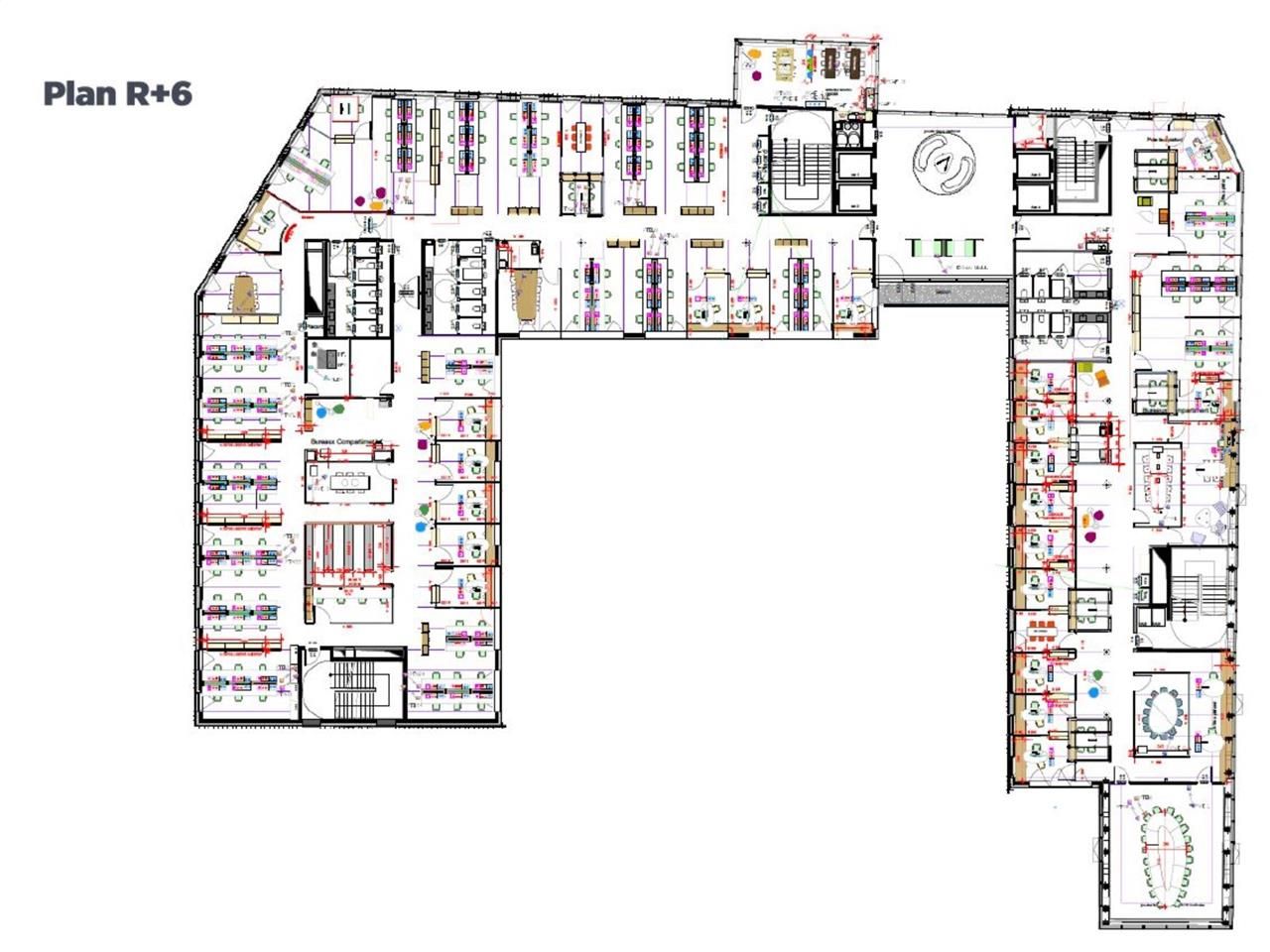 - Une réelle souplesse du plateau permettant d'aménager les espaces de travail, sur une épaisseur de 13 à 18m, selon sa culture d'entreprise en open-space, mixte ou cloisonné