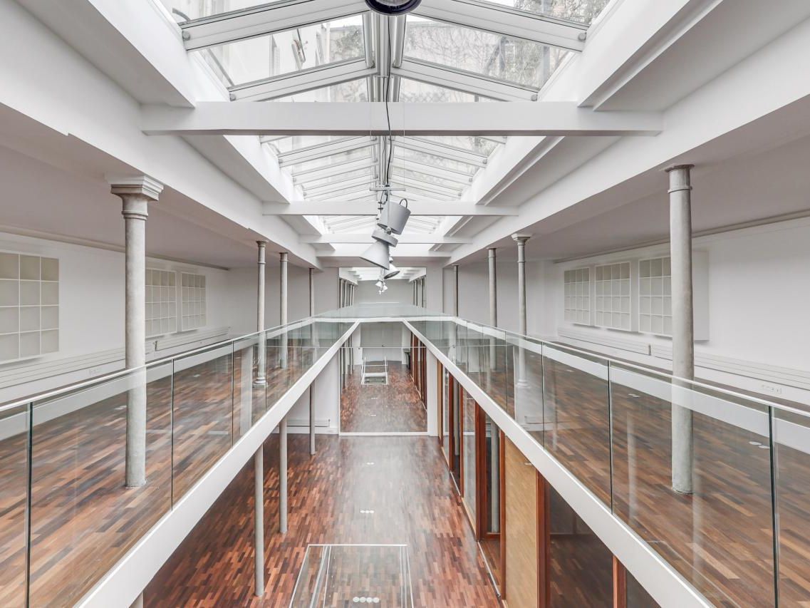 La surface est rénovée, elle est organisée en open space et bureaux cloisonnés. La verrière neuve et ouvrante permet un éclairage zénithal optimal (Vélux double vitrage Securit et stores intérieurs motorisés). Cuisine équipée, 2 salles de réunion en sous-sol, WC à chaque niveau et une douche au sous-sol.