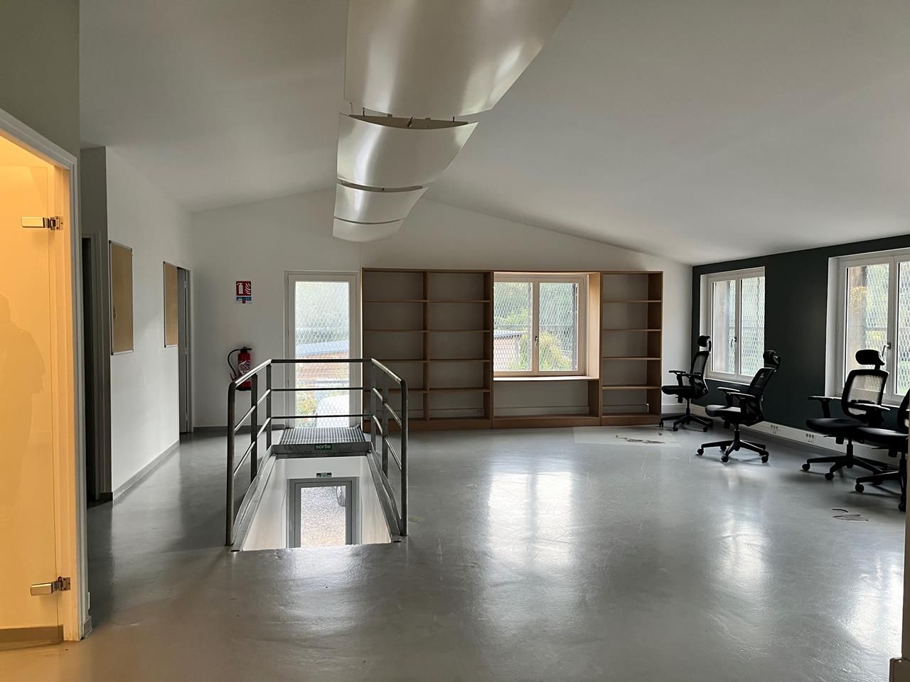 dégagement avec escalier donnant accès à 1 open space,