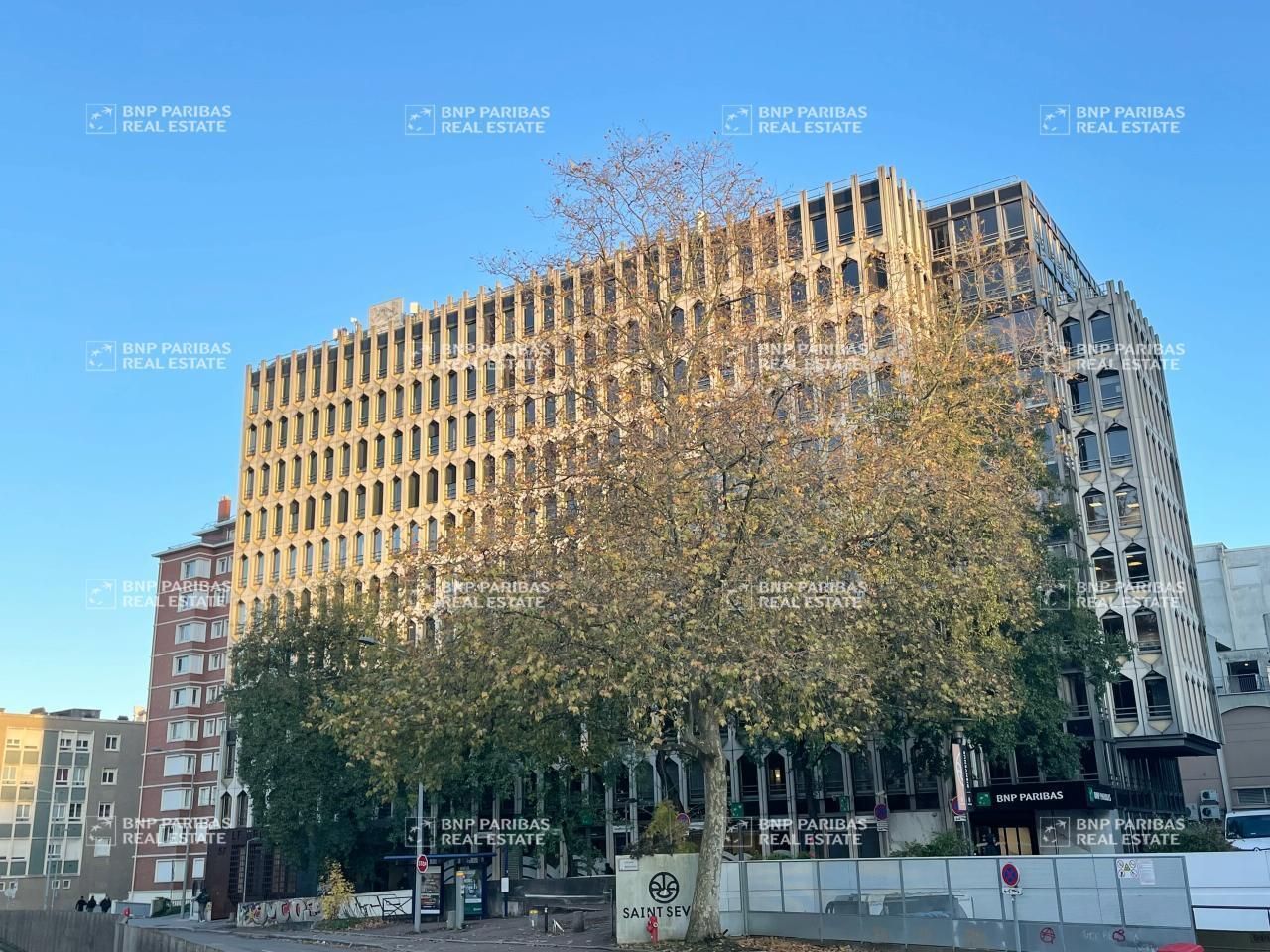 Accolé au centre commercial Saint Sever, cet immeuble bénéficie des nombreux services à proximité : transports en commun (métro saint sever), restauration, banques, poste ...