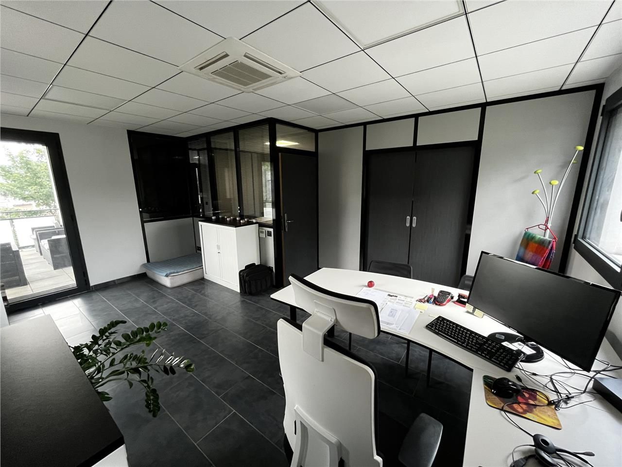 - 2ème partie : espace direction - accès sécurisé - 5 bureaux+ 1 salle de réunion - 2ème terrasse privative + 1 kitchenette