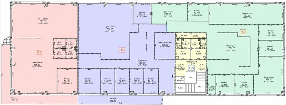 Hauteur sous bacs collaborants : 3m50