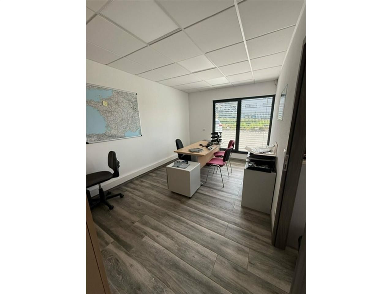 Bureau aménagé d'une surface 60m², chauffage-climatisation réversible, avec une surface de stockage de 60 m² et 1 porte sectionnelle.