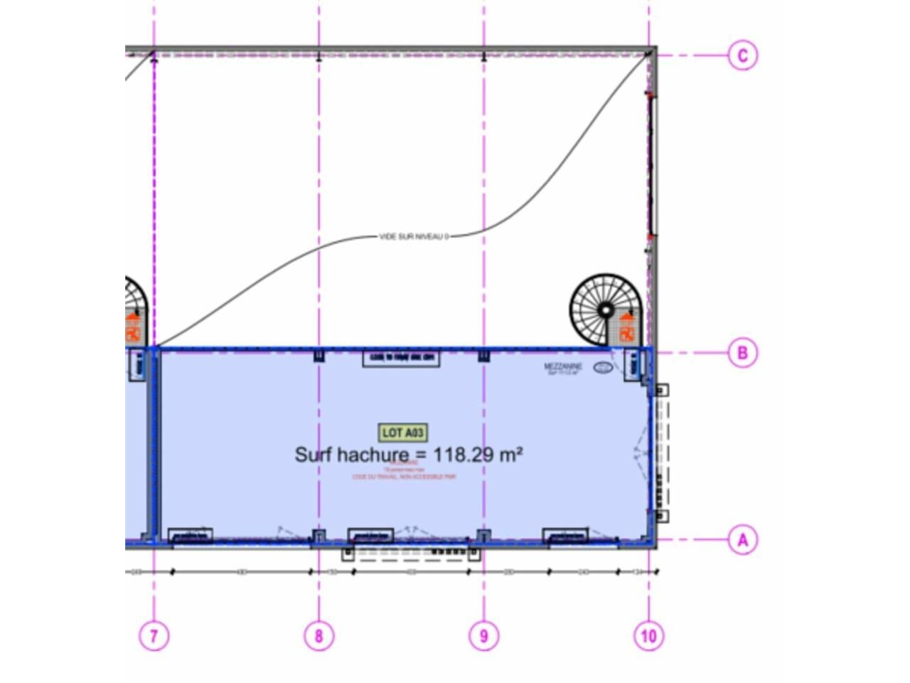 Locaux professionnels de 412 m² composés de 297m² en RdC et 115m² en mezzanine (aménageables en bureaux)
