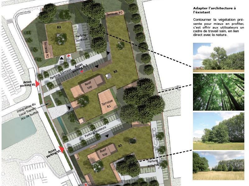 Les architectes sélectionnés souhaitent privilégier une conception orientée vers le bienêtre au travail et favorisant la communication et la convivialité. Le projet propose ainsi de nombreux espaces extérieurs et une architecture résolument tournée vers la nature.
