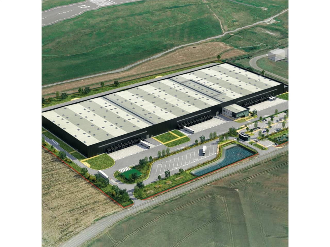 L'ensemble bénéficie d'une hauteur de 11.50m, de 33 portes à quai avec possibilité de 62 en double-face), 2 rampes de plain-pied, 150 places VL, 22 places PL, d'une centrale photovoltaïque en toiture ainsi que d'un poste de garde et un acceuil chauffeurs.