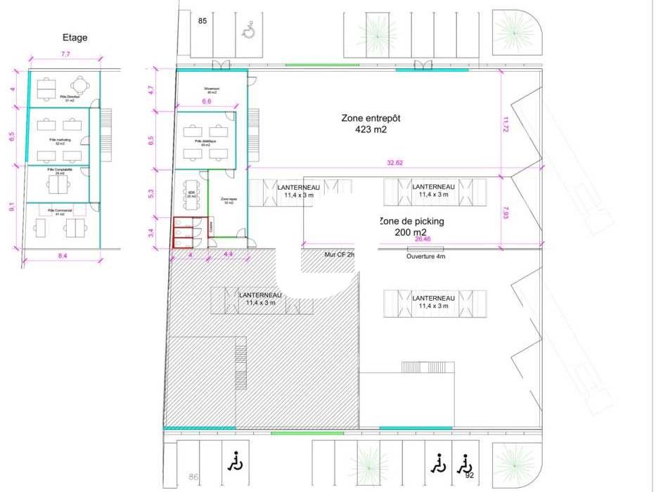 - Possibilité de création de bureaux en mezzanine en sus