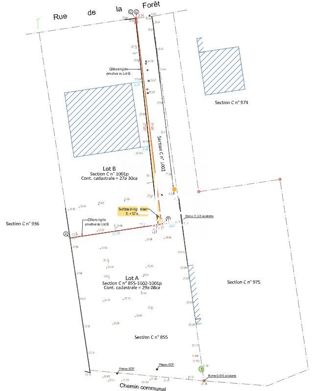 Ce terrain à bâtir, d'une superficie totale de 2900 m², est actuellement libre de tout constructeur, offrant ainsi une grande flexibilité pour vos projets de construction. Il est entièrement clos par un grillage. Un tabouret de tout-à-l'égout est déjà installé de la voirie et le long du chemin d'accès, facilitant les futurs raccordements nécessaires.