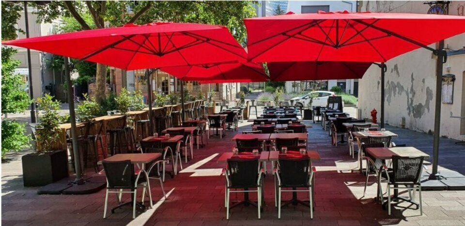 - à l'extérieur, une grande terrasse d'environ 110 places, avec tables, chaises, parasol