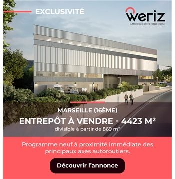 Sur notre portail dédié à l'immobilier d'entreprise, votre recherche de locaux se trouvera facilitée par l'interface cartographique plaçant les annonces immobilières en fonction de leur emplacement. Pour optimiser les résultats de recherche d'une vente d’entrepôt dans les Bouches-du-Rhône, vous pouvez choisir vos critères complémentaires comme un quai pour faciliter le chargement et le déchargement des marchandises, un bardage double peau pour une meilleure isolation de votre bâtiment industriel ou encore des portes sectionnelles pour gagner de l'espace de stockage. Vous pouvez aussi visualiser les locaux d'activités avec une aire de manœuvre pour les engins de manutentions et les semi-remorques, regarder dans les descriptifs la hauteur sous plafond et aussi la présence de places de parking pour votre entrepôt logistique. Sur chaque fiche descriptive, vous pourrez afficher le loyer annuel (par m² ou au global) ou le prix mensuel pour mieux anticiper sur les frais inhérents à la location d'un local professionnel. Si vous souhaitez obtenir des informations complémentaires pour acheter un entrepôt dans les Bouches-du-Rhône ou des locaux d’activités, nous vous invitons à contacter directement le cabinet de conseil en immobilier d'entreprise qui la commercialise.